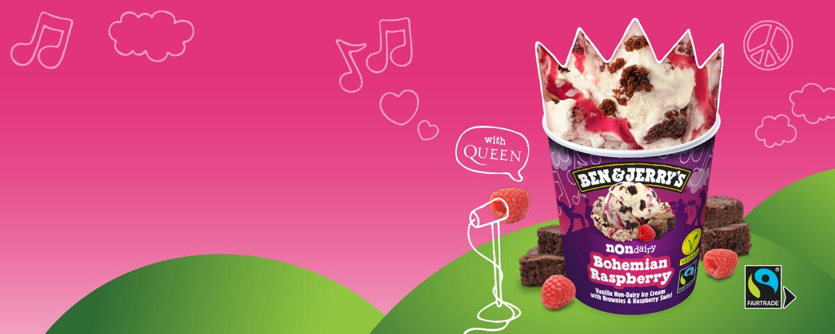 Gelado Non-Dairy de Baunilha, com pedaços de Brownie e swirls de Framboesa