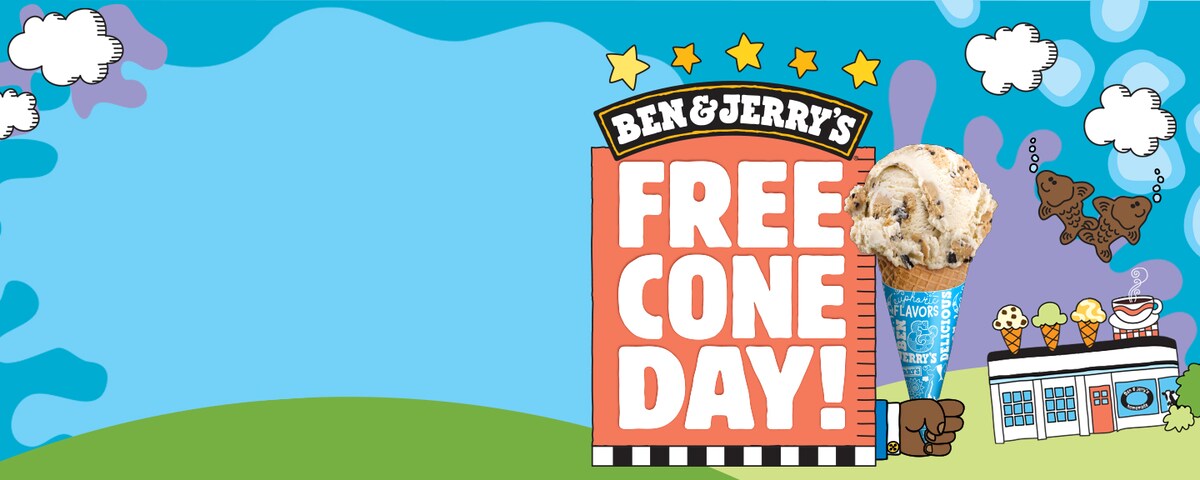 O Free Cone Day é um dia celebrado em todo o mundo em que damos gelado grátis! Sim, ouviste bem! Cada vez que pedes uma bola de gelado Ben & Jerry's estás a mostrar o quanto gostas de nós, e neste dia queremos mostrar que adoramos todos os nossos fãs através do Free Cone Day!
